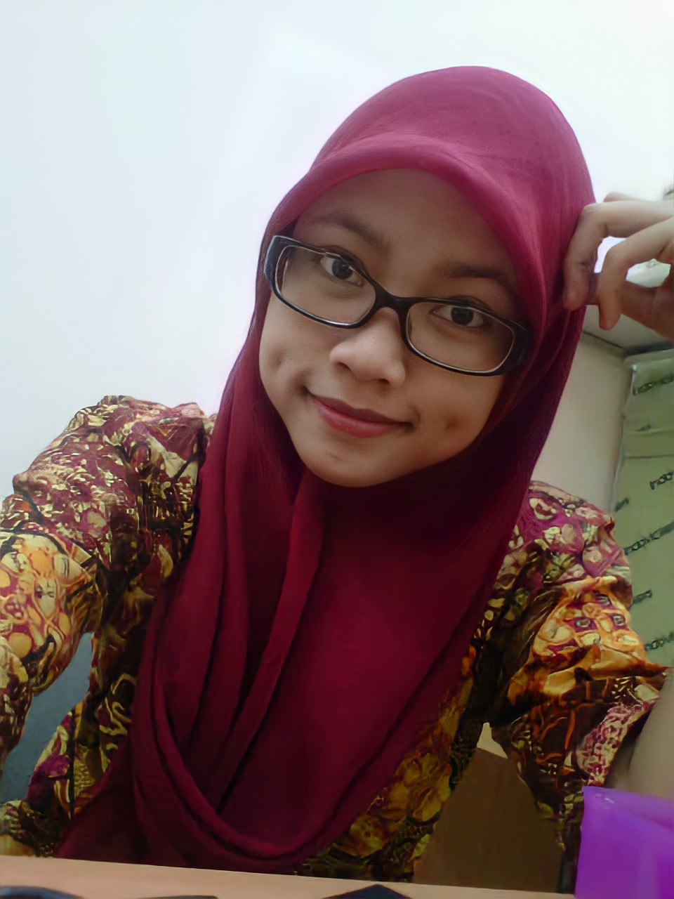 Kadangkala beliau hanya memakai tudung sarung kerana lebih mudah tanpa perlu melihat ke cermin.